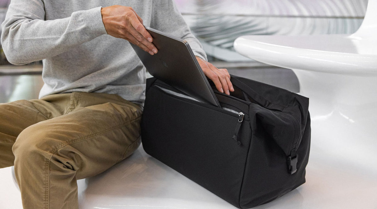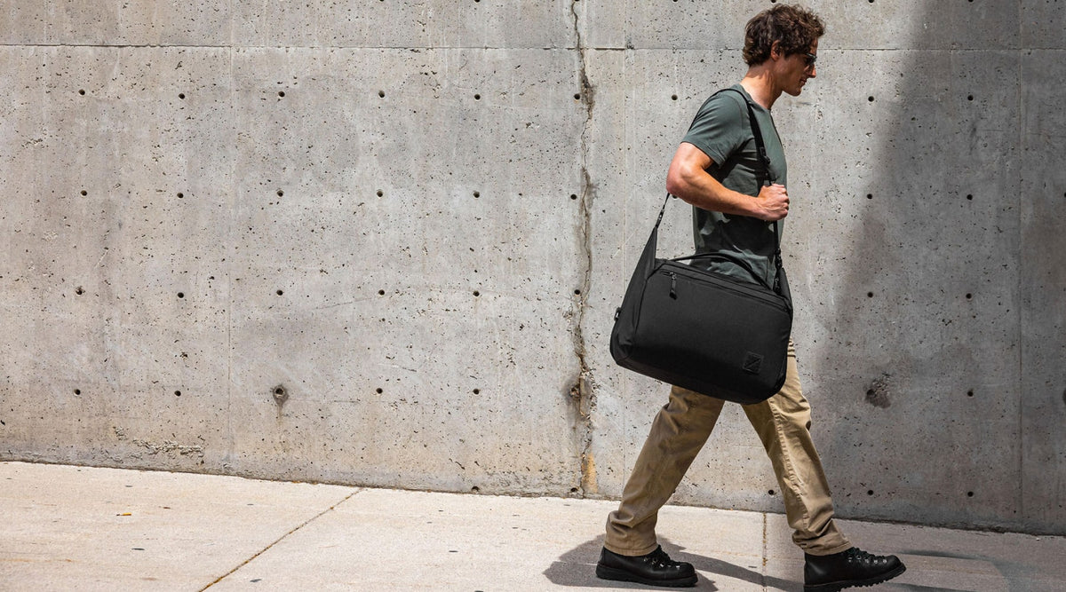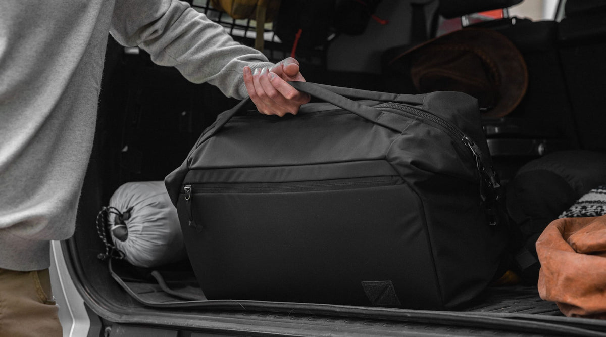 В большинстве сумок, чтобы ручки не болтались, их надо скреплять стропой или липучкой. Ручки Transit Duffel специально сделаны так, чтобы смотреть в центр сумки и совмещаться друг с другом.